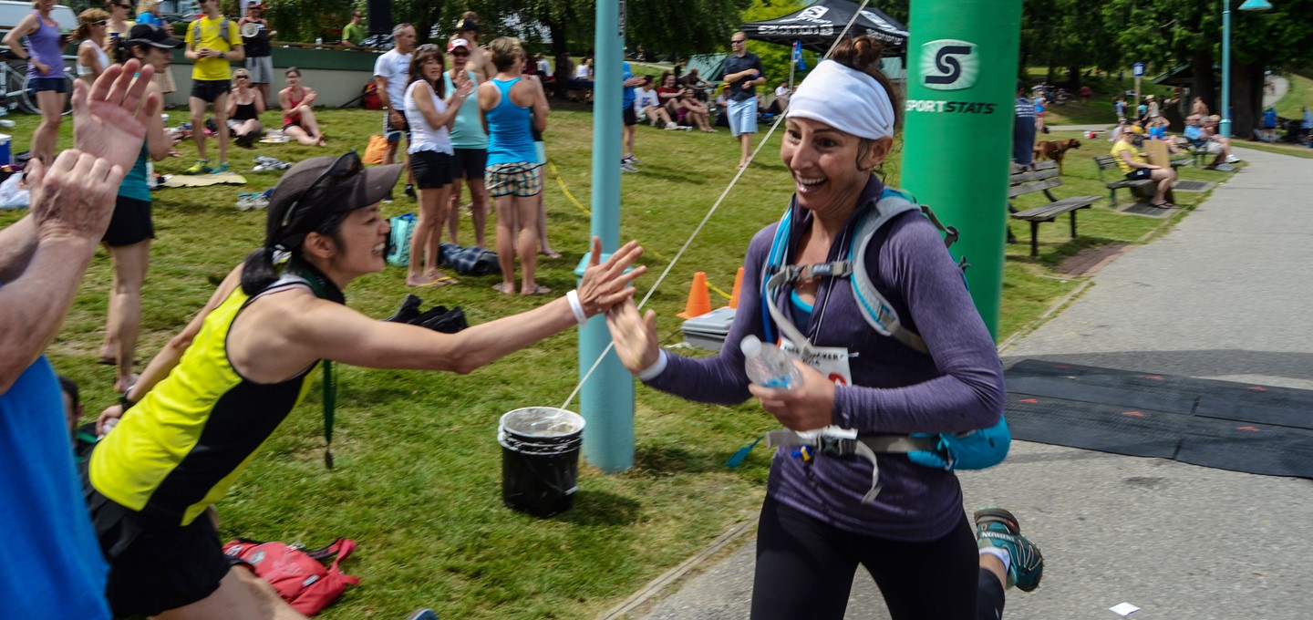 Mike Jones juggled two cameras at Panorama Park in order to capture the finishers and the scene around the finish line. It was a very busy place with runners, family, friends, medals, massages, dips into Deep Cove, aid station treats, sponsors, Dave Norona, hugs and high fives.…