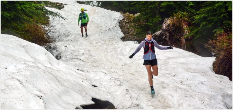 What a weather contrast from last week’s training run. From cloud, mist and rain to blue skies and heat! The snow is quickly melting at Cypress. Whether it will be gone by race day, we will know in less than two weeks. Salvador…